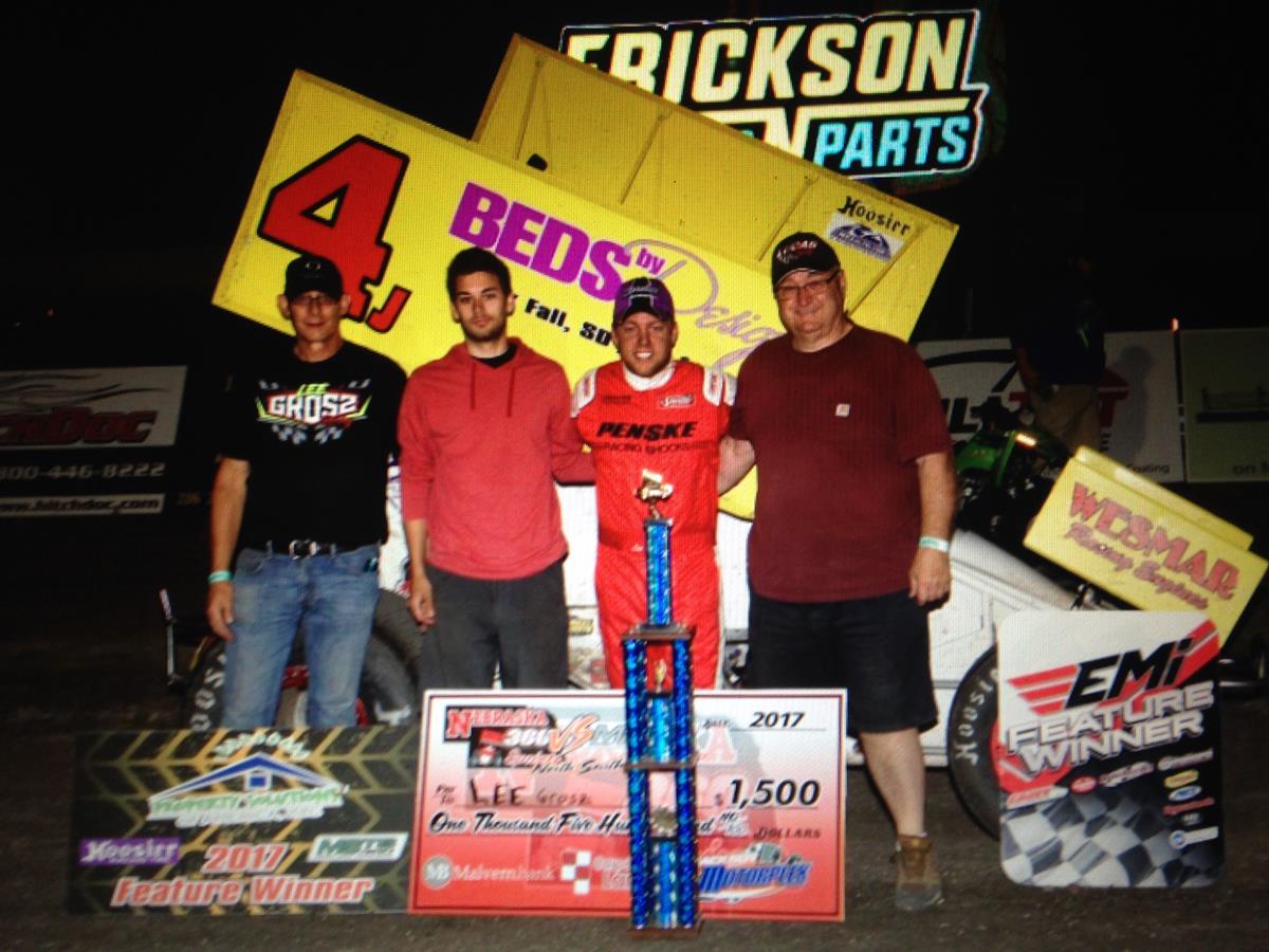 Lee Grosz and Jesse Lindberg each scored their first win of the season at the half-mile oval while Brandon Beckendorf won his second straight race, Matthew Looft claimed his fourth consecutive event and D.J. Clinton garnered his third A Main triumph in a row.