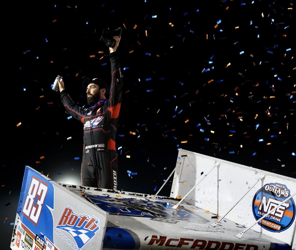 One final caution on Lap 22 for a flat tire for Spencer Bayston bunched the field together, but McFadden was strong in the closing laps to secure his fifth World of Outlaws triumph of the season – tied for the third most.